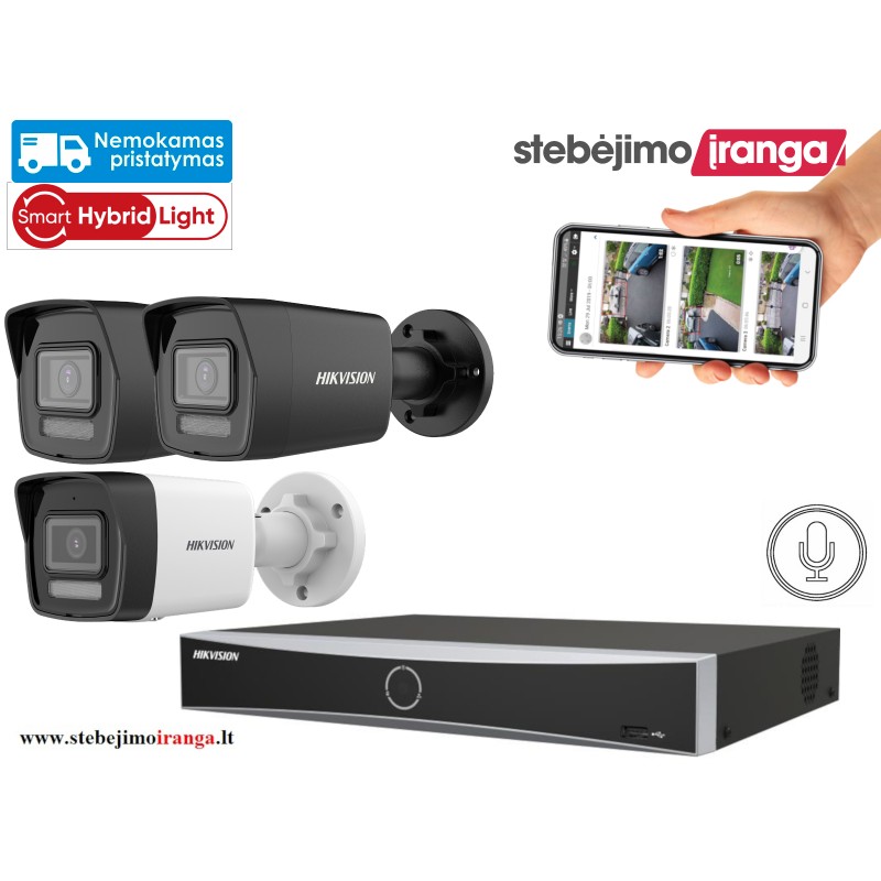 x3 Hikvision bullet DS-2CD1043G2-LIU F2.8 (baltos arba juodos - rinktis dešinėje pusėje, virš mygtuko "Į krepšelį", "Kameros spalva"