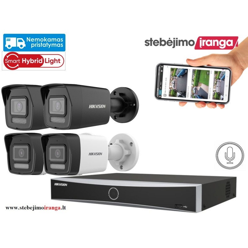 x4 Hikvision bullet DS-2CD1043G2-LIU F2.8 (baltos arba juodos - rinktis dešinėje pusėje, virš mygtuko "Į krepšelį", "Kameros spalva"