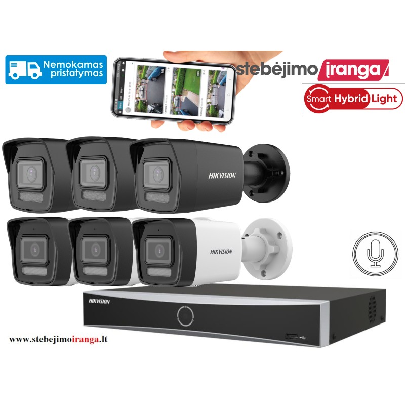 x6 Hikvision bullet DS-2CD1043G2-LIU F2.8 (baltos arba juodos - rinktis dešinėje pusėje, virš mygtuko "Į krepšelį", "Kameros spalva"